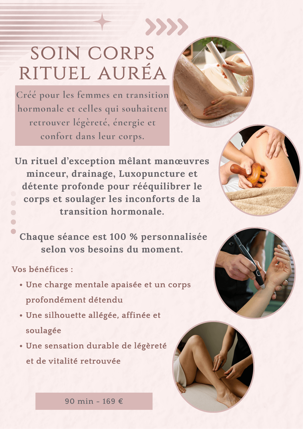Le Rituel Auréa est un soin corps profond, conçu pour apaiser le système nerveux, relâcher les tensions et relancer les circulations, dans un contexte de transition hormonale.